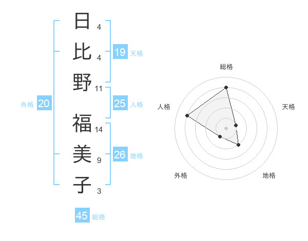 日比野 福美子さんの総格は45画の4点!