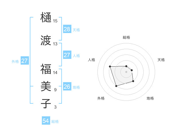 樋渡 福美子さんを姓名の画数から五運を鑑定