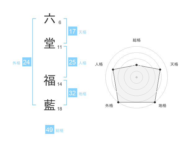 六堂 福藍さんの総格は49画の2点!