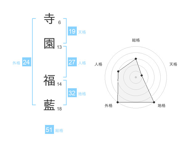 寺園 福藍さんの天格は19画の1点!