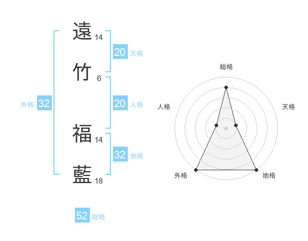 遠竹 福藍さんの外格は32画の5点!