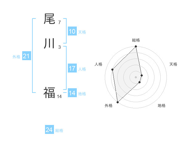 尾川 福さんの総格は24画の5点!