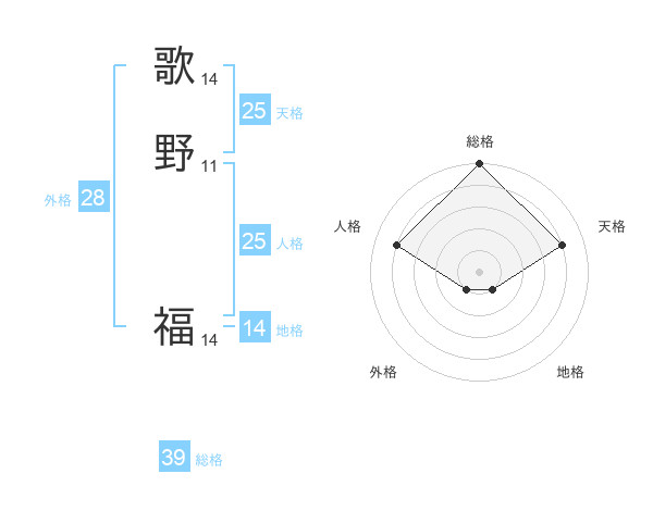 歌野 福さんの天格は25画の4点!
