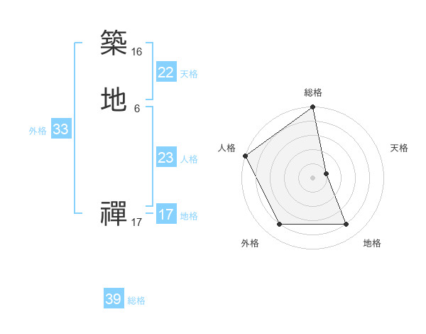 築地 禪さんを姓名の画数から五運を鑑定