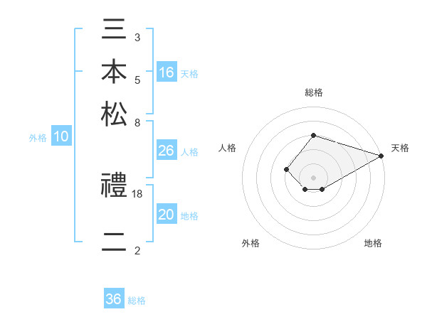 三本松 禮二さんを姓名の画数から五運を鑑定