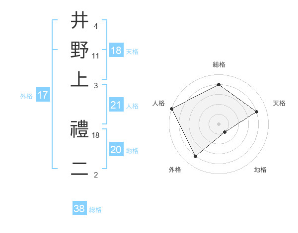 井野上 禮二さんを姓名の画数から五運を鑑定