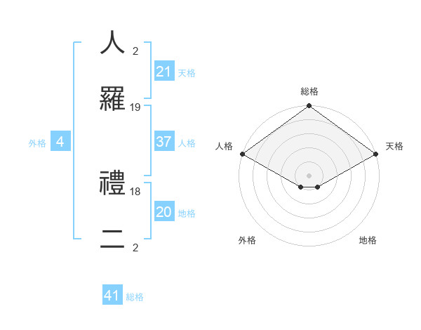 人羅 禮二さんを姓名の画数から五運を鑑定