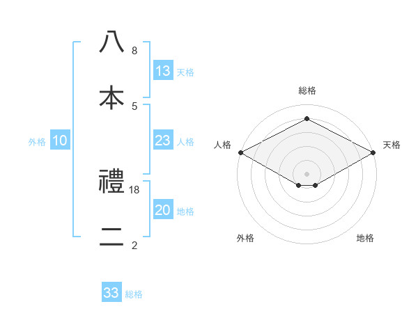 八本 禮二さんの総格は33画の4点!