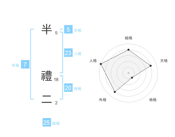 半 禮二さんの総格は25画の4点!