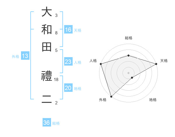 大和田 禮二さんを姓名の画数から五運を鑑定