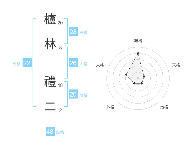 櫨林 禮二さんの総格は48画の4点!