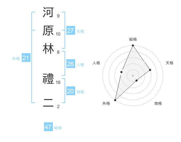 河原林 禮二さんを姓名の画数から五運を鑑定