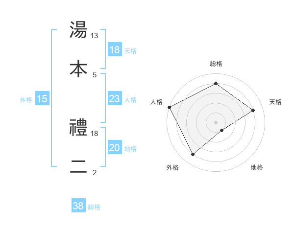 湯本 禮二さんの天格は18画の4点!