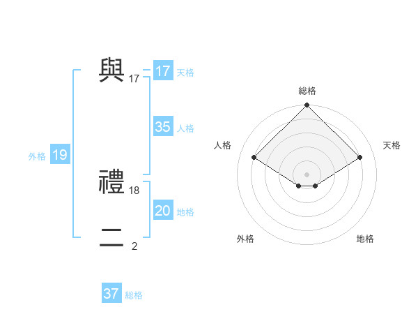 與 禮二さんの総格は37画の5点!