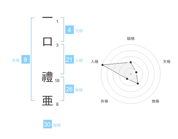 一口 禮亜さんの地格は26画の2点!