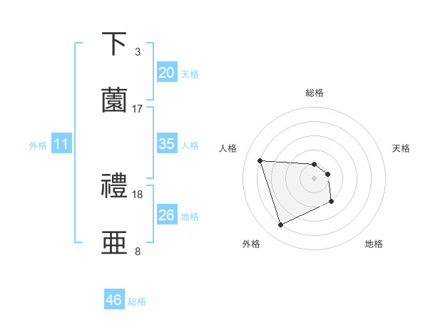 下薗 禮亜さんの総格は46画の1点!