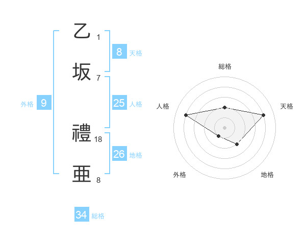 乙坂 禮亜さんを姓名の画数から五運を鑑定