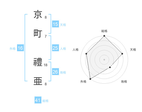 京町 禮亜さんの外格は16画の5点!