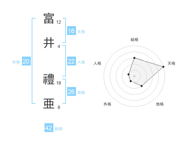 富井 禮亜さんの総格は42画の3点!