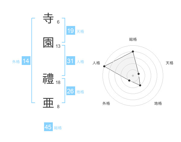 寺園 禮亜さんの総格は45画の4点!