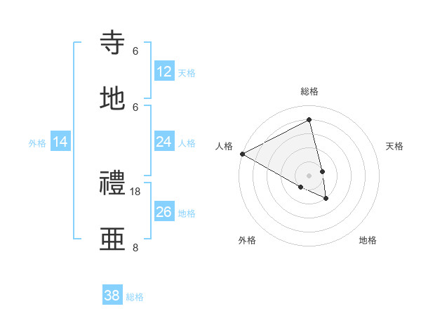 寺地 禮亜さんの総格は38画の4点!