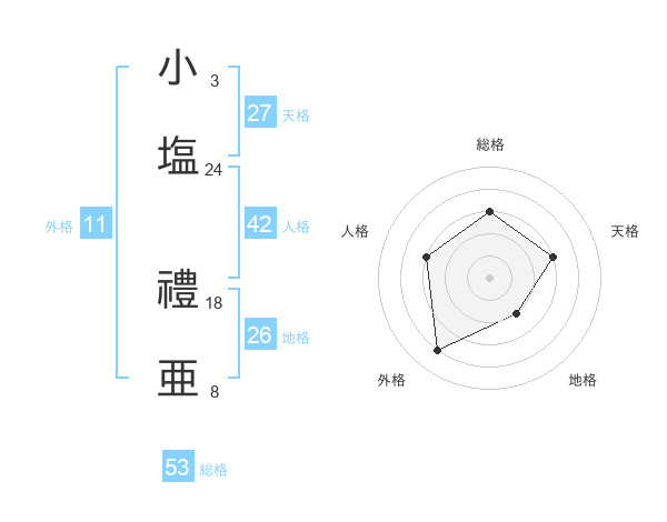 小塩 禮亜さんを姓名の画数から五運を鑑定