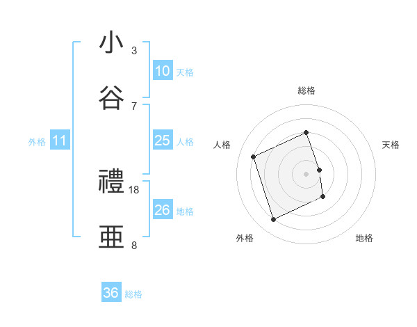 小谷 禮亜さんの総格は36画の3点!