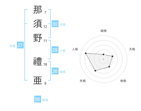 那須野 禮亜さんを姓名の画数から五運を鑑定