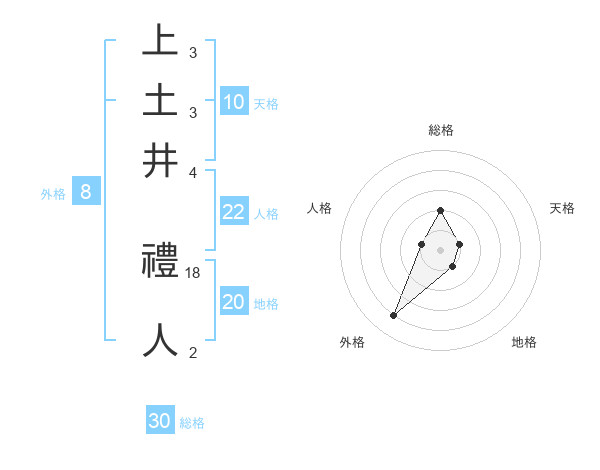 上土井 禮人さんの総格は30画の2点!