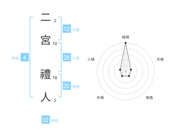 二宮 禮人さんの総格は32画の5点!