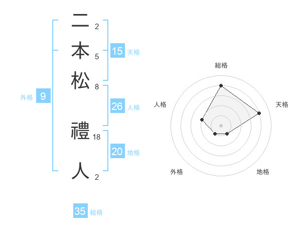 二本松 禮人さんの総格は35画の4点!