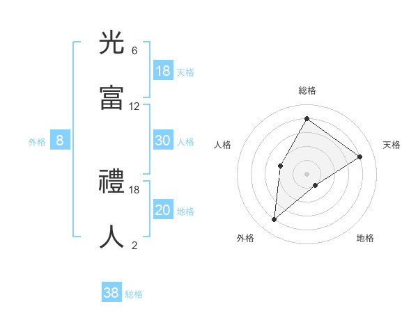 光富 禮人さんの総格は38画の4点!