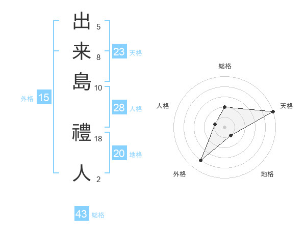 出来島 禮人さんの天格は23画の5点!