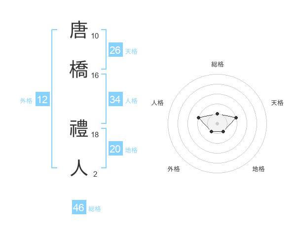 唐橋 禮人さんを姓名の画数から五運を鑑定