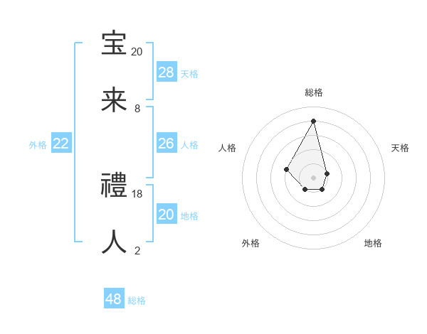 宝来 禮人さんの総格は48画の4点!