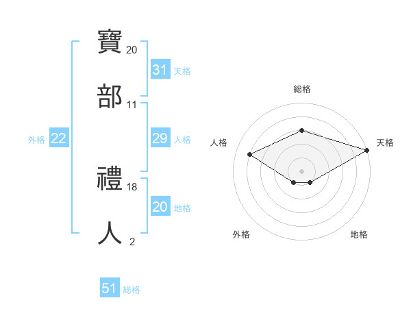 寶部 禮人さんを姓名の画数から五運を鑑定