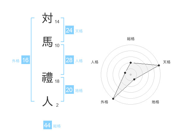 対馬 禮人さんの総格は44画の2点