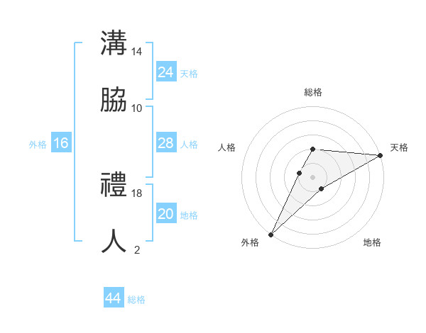 溝脇 禮人さんの総格は44画の2点!