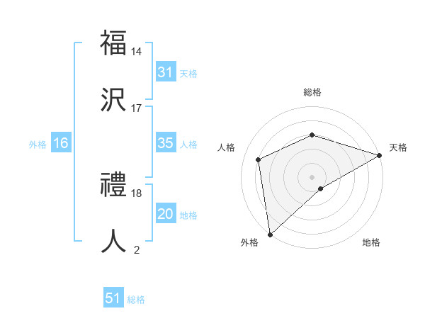 福沢 禮人さんを姓名の画数から五運を鑑定