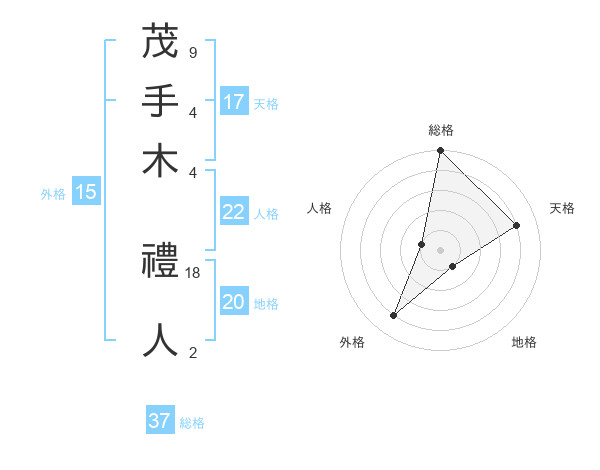 茂手木 禮人さんを姓名の画数から五運を鑑定