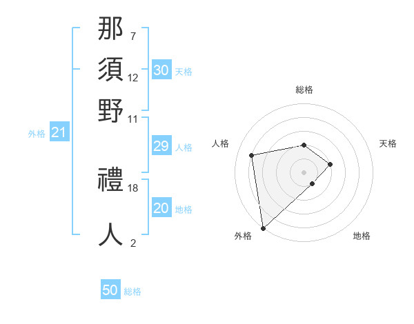 那須野 禮人さんの総格は50画の2点!