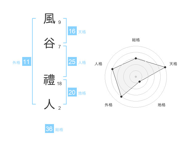 風谷 禮人さんを姓名の画数から五運を鑑定