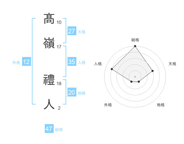 髙嶺 禮人さんを姓名の画数から五運を鑑定