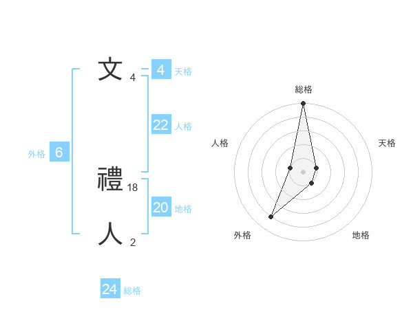 文 禮人さんの総格は24画の5点!