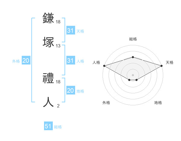 鎌塚 禮人さんの天格は31画の5点!