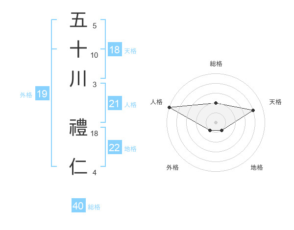 五十川 禮仁さんの天格は18画の4点!