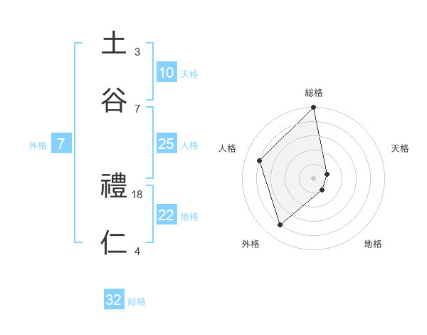 土谷 禮仁さんの総格は32画の5点!