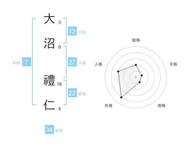 大沼 禮仁さんを姓名の画数から五運を鑑定