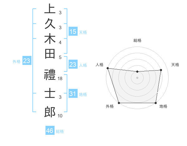 上久木田 禮士郎さんを姓名の画数から五運を鑑定
