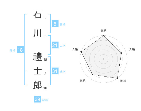 石川 禮士郎さんを姓名の画数から五運を鑑定